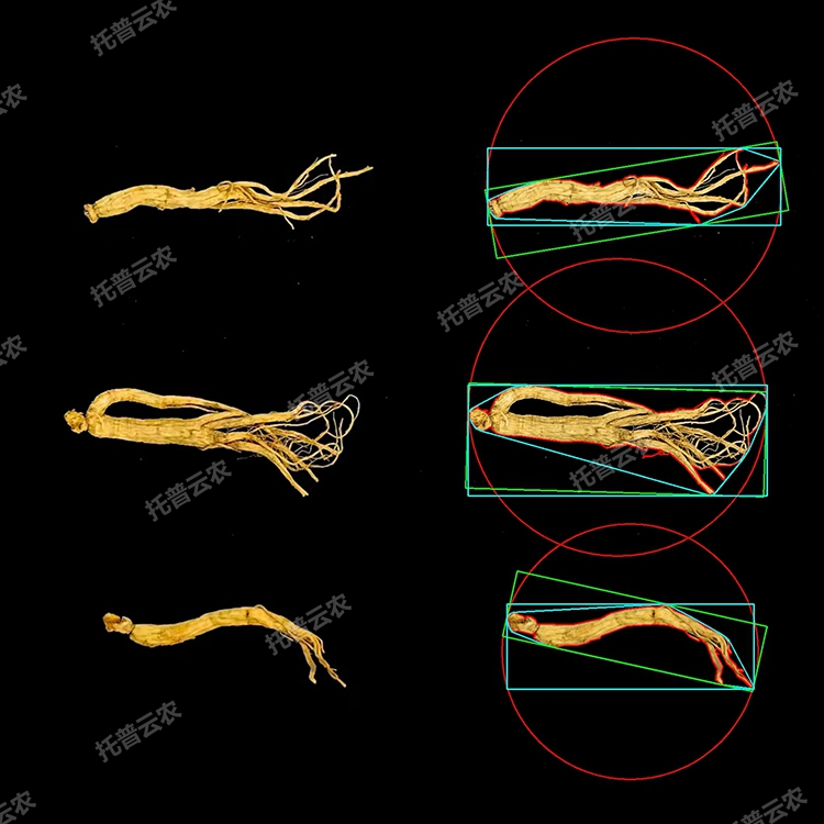 中藥材形態(tài)解析:基于先進(jìn)視覺算法,在3秒內(nèi)自動(dòng)完成目標(biāo)識(shí)別與分割,精準(zhǔn)解析中藥材輪廓、直徑、長(zhǎng)度、寬度、周長(zhǎng)、顏色、數(shù)量等關(guān)鍵表型性狀。